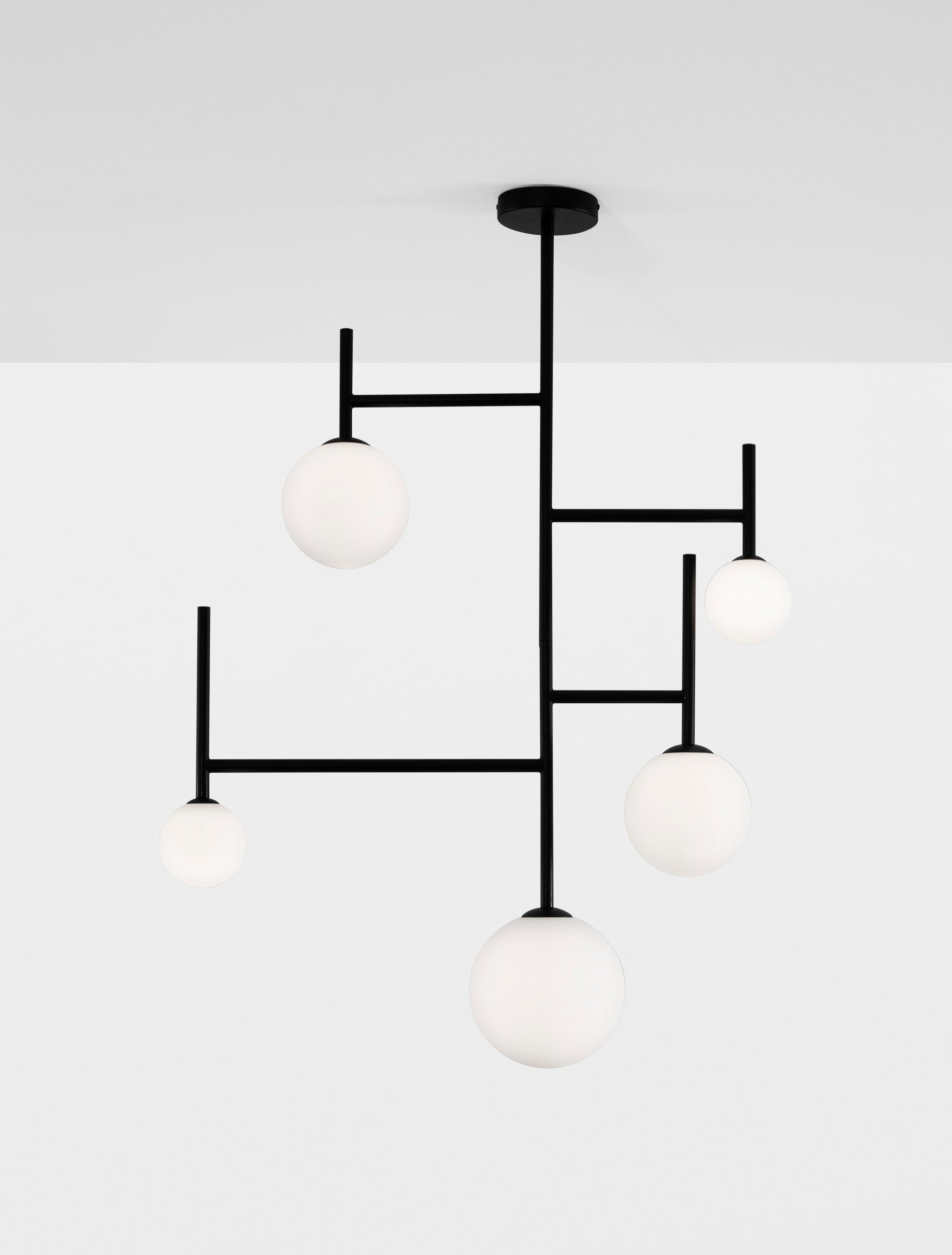 When it comes to Scandinavian style lighting, the reduced form and simple design are precisely the main features of the lamps. Our LICATO chandelier by Nova Luce has striking opal glass spheres as a dominant detail that give any living room a modern design. The lamp combines a thin luminous LED circle and linear elements on which the glass lampshades are located.