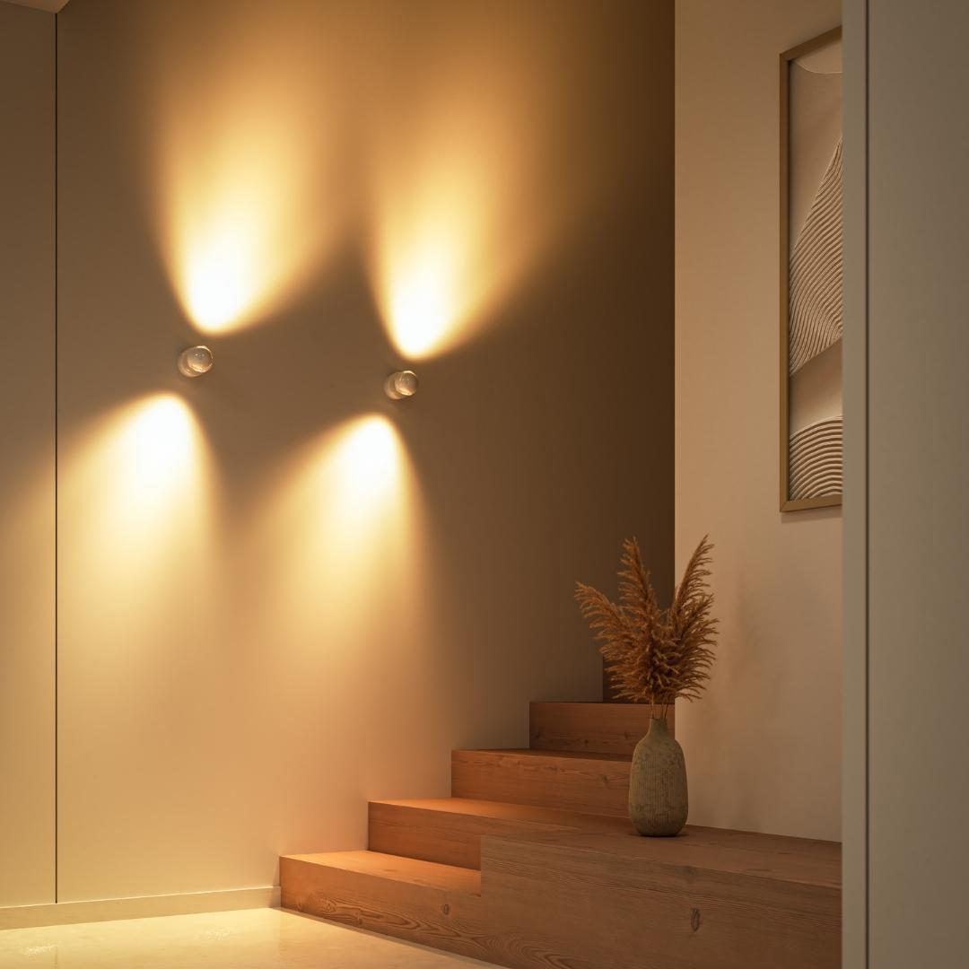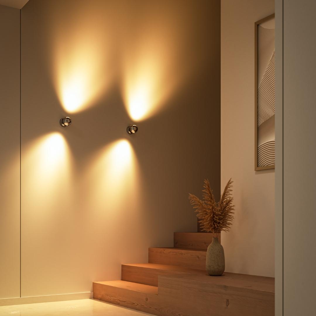 Die Pontos LED-Wandleuchte vereint modernes Design mit funktionaler Beleuchtung. Erhältlich in den eleganten Farben Schwarz-Chrom, Chrom oder Weiß, besticht diese Leuchte durch ihre zweiseitige Lichtaustrittsfunktion, die stilvolle Lichtkegel an die Wand projiziert. Mit einem Kugeldurchmesser von 8 cm, der sich um 360 Grad drehen lässt, bietet die Pontos maximale Flexibilität bei der Lichtausrichtung.Die Leuchte besteht aus einer robusten Kombination von Aluminium und Glas und hat eine Lichttemperatur von 2700K für eine warme, gemütliche Atmosphäre. Der hohe Farbwiedergabeindex von CRI 96 sorgt für eine präzise und natürliche Farbdarstellung. Mit einer Leistung von 8 Watt und einem variablen Lichtstrom von 200 bis 1000 Lumen bietet die Pontos genau die richtige Lichtmenge für jede Situation.Besonders praktisch ist die Möglichkeit, die Leuchte per Fernbedienung zu dimmen. Die kompakte Wandhalterung misst 12 cm x 8 cm, was die Installation an stromführenden Punkten leicht macht. Die Schutzklasse IP20 macht sie ideal für den Innenbereich.Die Pontos LED-Wandleuchte ist die perfekte Wahl für alle, die modernes Design, Flexibilität und hochwertige Beleuchtung in einem Produkt vereinen möchten.