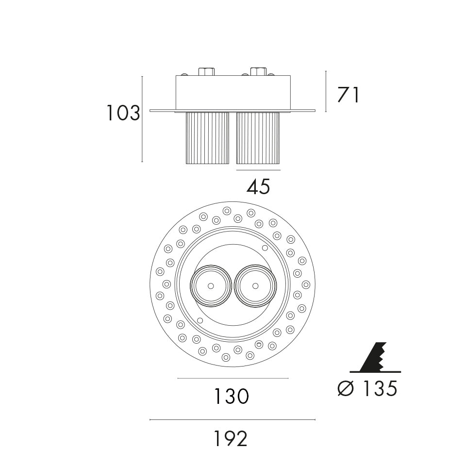 Die Leuchte überzeugt durch ihr elegantes, minimalistisches Design sowie durch hohe Flexibilität: verschiedene Lichtfarben, Abstrahlwinkel, Oberflächen und Einstellmöglichkeiten ermöglichen eine individuelle Anpassung an jedes Projekt. Ein besonderes Merkmal ist der verschiebbare Leuchteneinsatz, mit dem sich der Lichtpunkt gezielt aus der Decke heraus positionieren und ausrichten lässt.