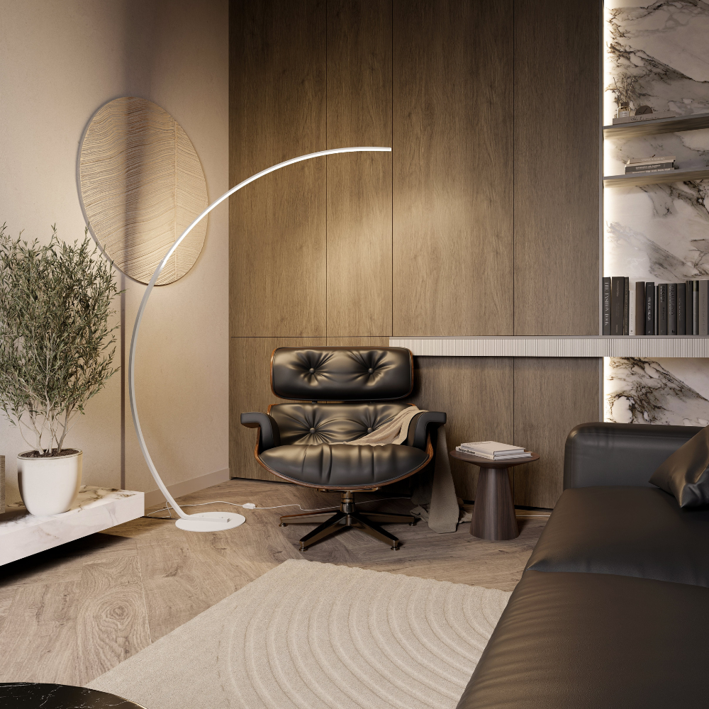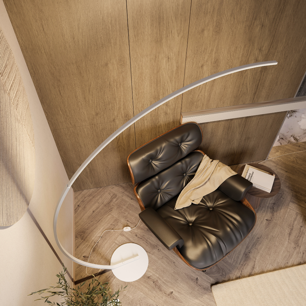 Die Icarus LED-Stehleuchte besticht durch ihr elegantes, bogenförmiges Design, das moderne Ästhetik und Funktionalität perfekt vereint. Mit einer Höhe von 170 cm und einer Tiefe von 128 cm sorgt sie für eine stilvolle Lichtquelle in jedem Raum. Der stabile Fuß, mit einem Durchmesser von 32 cm, gewährleistet einen sicheren Stand, während der einseitige Lichtaustritt gezielte und angenehme Beleuchtung bietet.Erhältlich in Schwarz und Weiß, passt die Icarus Leuchte in verschiedenste Wohnstile. Ihre Bedienung erfolgt bequem über einen integrierten Fußschalter, der auch die Helligkeitsregelung ermöglicht. Mit einer Farbtemperatur von 2700K schafft die Leuchte eine warme, einladende Atmosphäre. Der Farbwiedergabeindex von CRI 90 sorgt für eine natürliche und präzise Farbdarstellung.Die Icarus ist mit einer leistungsstarken 22,9W LED ausgestattet, die eine Lebensdauer von über 50.000 Stunden hat und damit besonders energieeffizient ist. Der Anschluss erfolgt über eine Netzspannung von 220-240V AC und 50 Hz. Die Schutzklasse IP20 macht sie ideal für den Innenbereich.Mit ihrer markanten Form und der praktischen Dimmfunktion ist die Icarus Stehleuchte die perfekte Wahl für moderne Wohnräume, die sowohl eine stimmungsvolle als auch funktionale Beleuchtung benötigen.