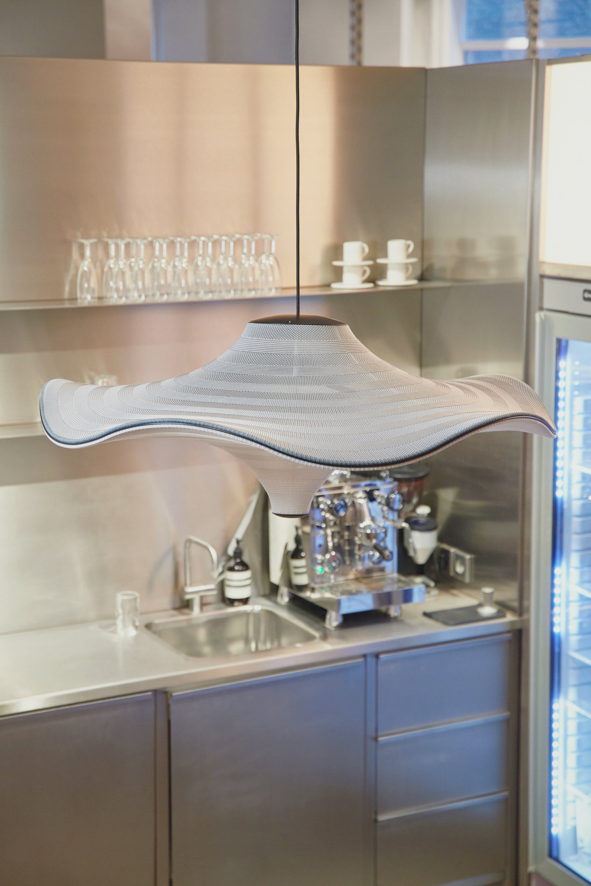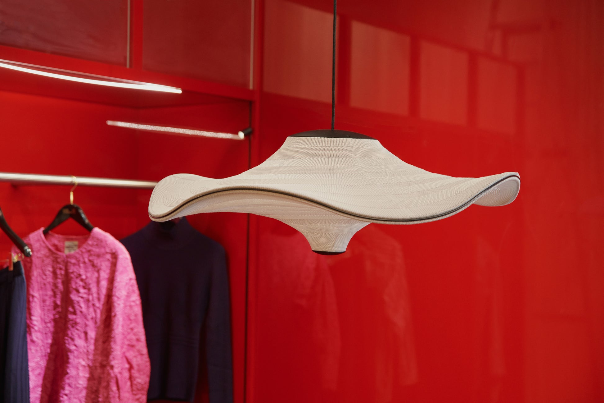 FLYING ist eine Familie skulpturaler Pendelleuchten mit weicher, organischer Form. Aufgehängt scheinen sie elegant im Raum zu schweben. FLYING-Leuchten werden in Dänemark unter Berücksichtigung von Nachhaltigkeit entworfen, gefertigt und produziert. Der Lampenschirm entsteht in einem 3D-Strickverfahren, bei dem das Garn direkt in das Endprodukt eingearbeitet wird – so entsteht kein Materialverlust. Die LED-Lichtquelle ist in die Oberseite der Leuchte integriert und streut das Licht sanft durch den gestrickten Boden. FLYING-Leuchten werden flach in Karton verpackt, was sie kompakt und somit umweltfreundlicher in Transport und Vertrieb macht.
