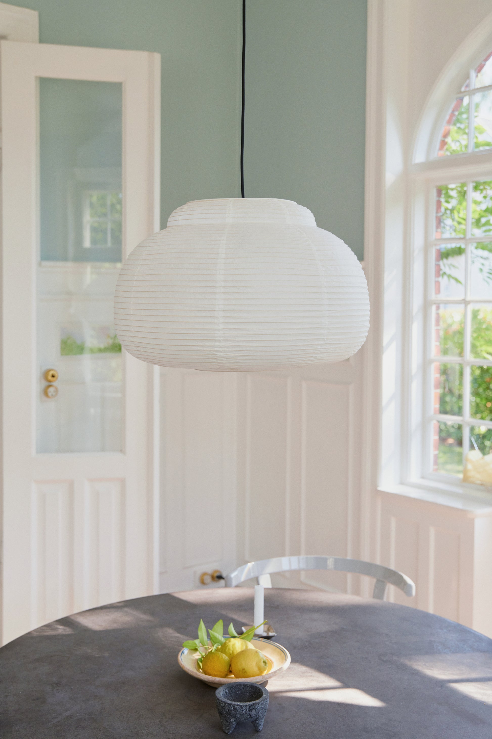 Papier ist um Kurven herum gestaltet – sanfte Kurven, die Einheit schaffen. Die Lampen der Kollektion entstehen aus demselben Ausgangspunkt: Eine Reihe von Formen wurde wiederholt, verzerrt und verfeinert, bis sie den richtigen Ausdruck und Stil erreicht haben. Die Eigenschaften von Reispapier sind erstaunlich; die Art und Weise, wie das Papier das Licht verteilt und allein durch seine Struktur und Transparenz Stimmungen erzeugt, ist schwer zu imitieren. Reispapier besitzt viele einzigartige Qualitäten – es trägt zu Leichtigkeit, Eleganz und Haptik bei, und die Lampen wirken wie schwebende Skulpturen.