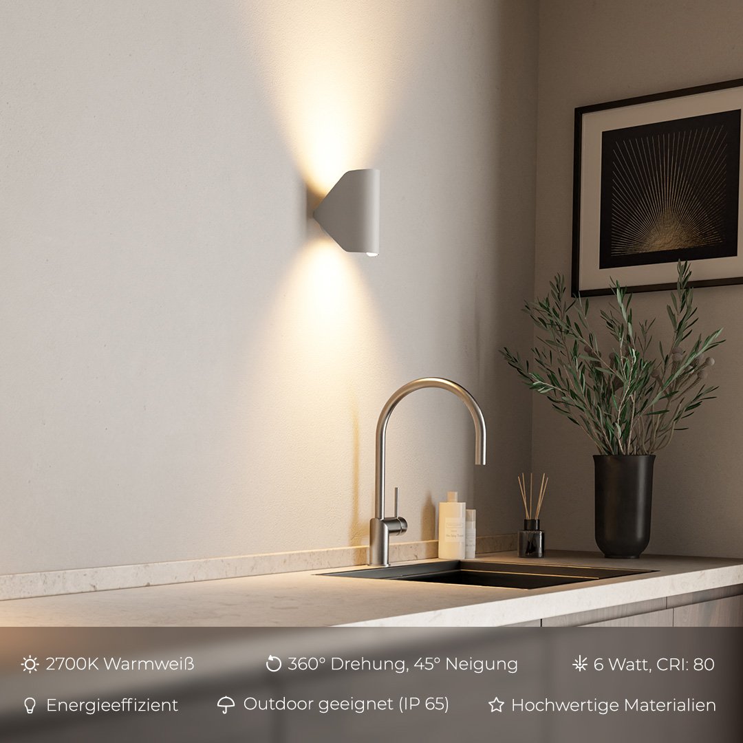 Die Polaris LED-Wandleuchte ist die perfekte Wahl für stilvolle und funktionale Beleuchtung. Mit ihrem modernen Design aus hochwertigem Aluminium und einer kompakten Größe von 16,5 cm Länge, 10,5 cm Tiefe und 11,5 cm Breite passt sie ideal in jeden Außenbereich. Die Leuchte ist sowohl in Schwarz als auch in Weiß erhältlich und bietet eine warme Farbtemperatur von 2700K mit einem Lichtstrom von 408 Lumen.Dank der Schutzklasse IP65 ist die Polaris staubdicht und wetterbeständig, was sie zur idealen Lösung für den Außeneinsatz macht. Ihr geringer Energieverbrauch von nur 6W und eine mittlere Lebensdauer von über 50.000 Stunden machen sie zudem äußerst effizient.Mit einem Farbindex von CRI 80 sorgt die Leuchte für eine natürliche Farbwiedergabe, während die Eingangsspannung von 220-240V AC und 50-60 Hz einen einfachen Anschluss gewährleistet. Bei einem Gewicht von nur 0,7 kg ist die Installation leicht und unkompliziert.Entdecken Sie die Kombination aus Langlebigkeit, Design und Energieeffizienz mit der Polaris LED-Wandleuchte!